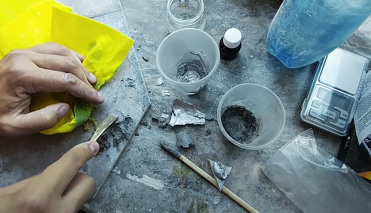 После стабилизации (грунтовки) заливается основной слой. Компаунд замешивается согласно инструкции в заданной производителем пропорции. Все компоненты необходимо отмерять на весах....