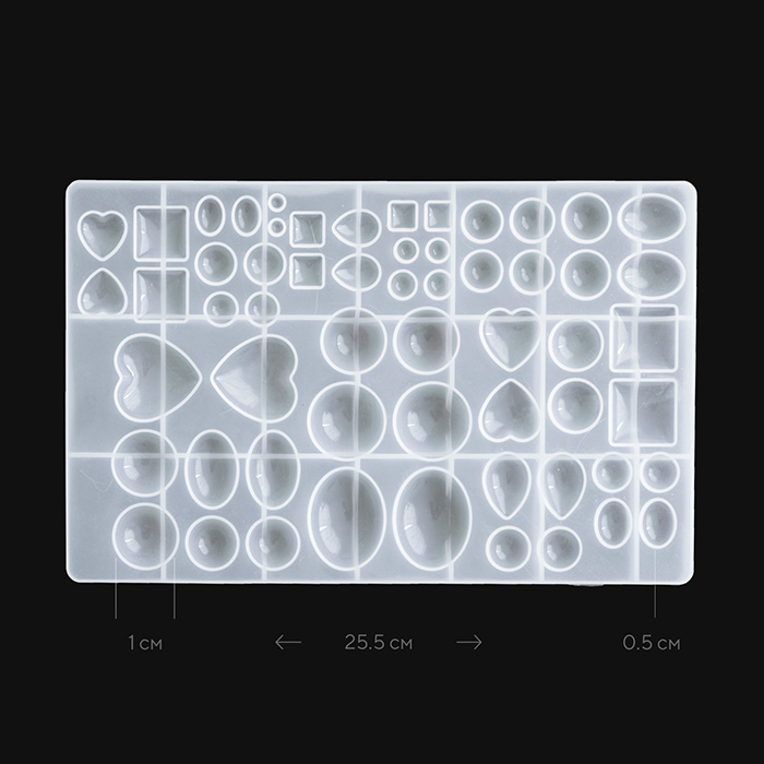 Кабошоны (линзы) разных форм, сборный силиконовый молд (58 ячеек)